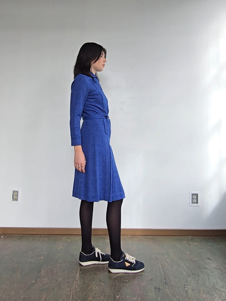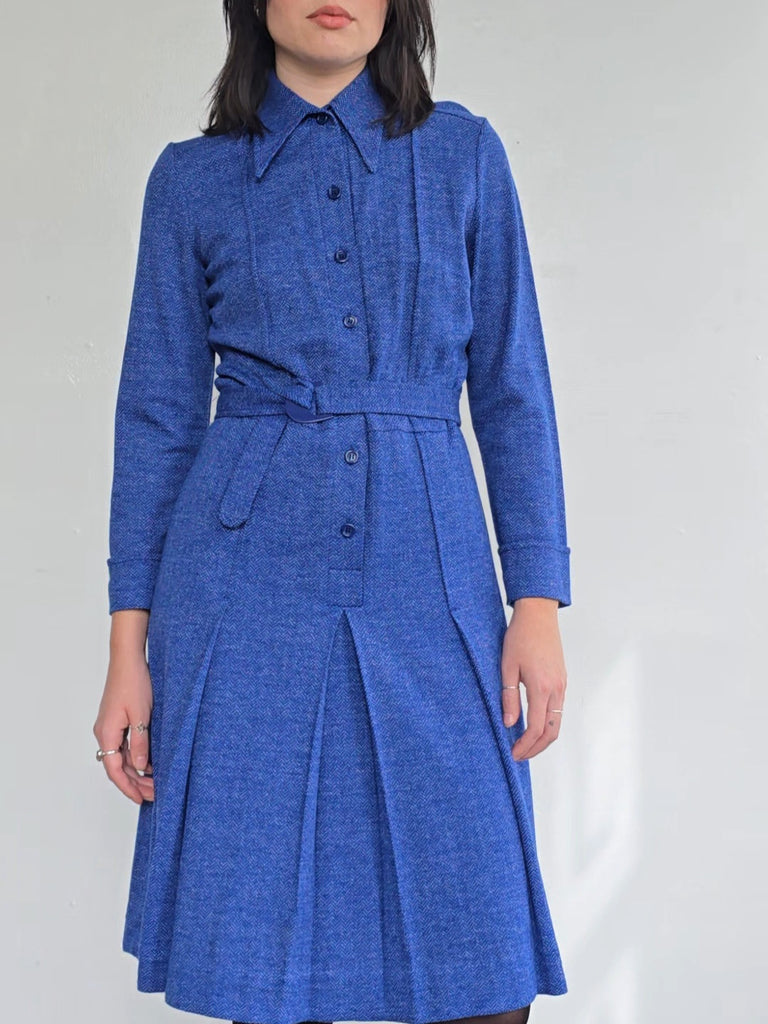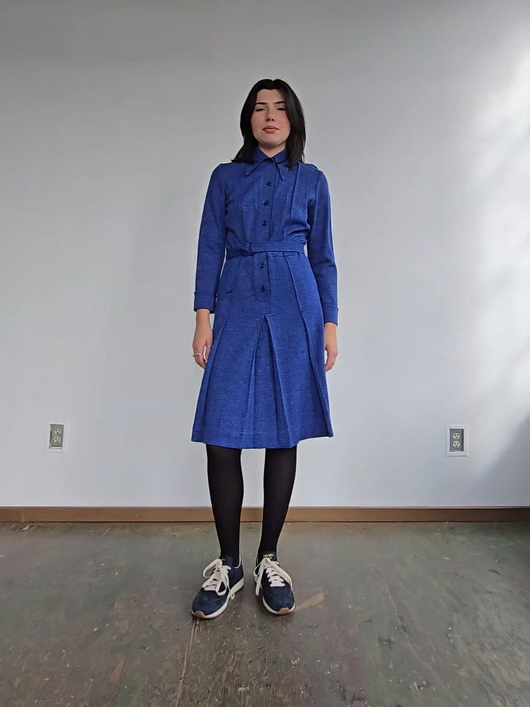 Vintage 1960s blue made in sweden shirtdress. Super cute buttonfront and pleating on skirt. Excellent condition for age.