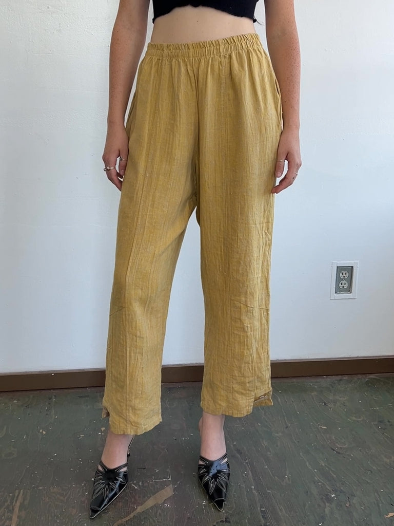 Mustard Linen Easy Pants (M/L)