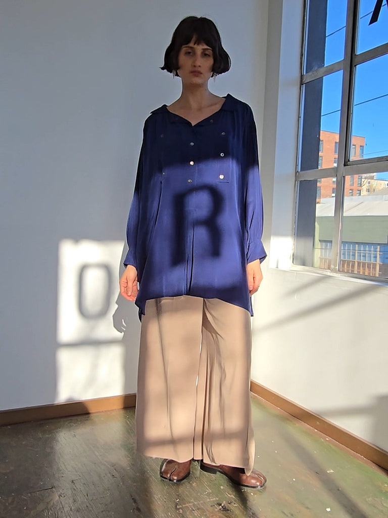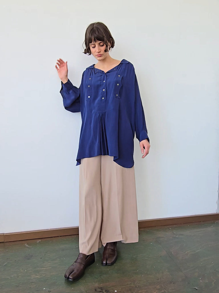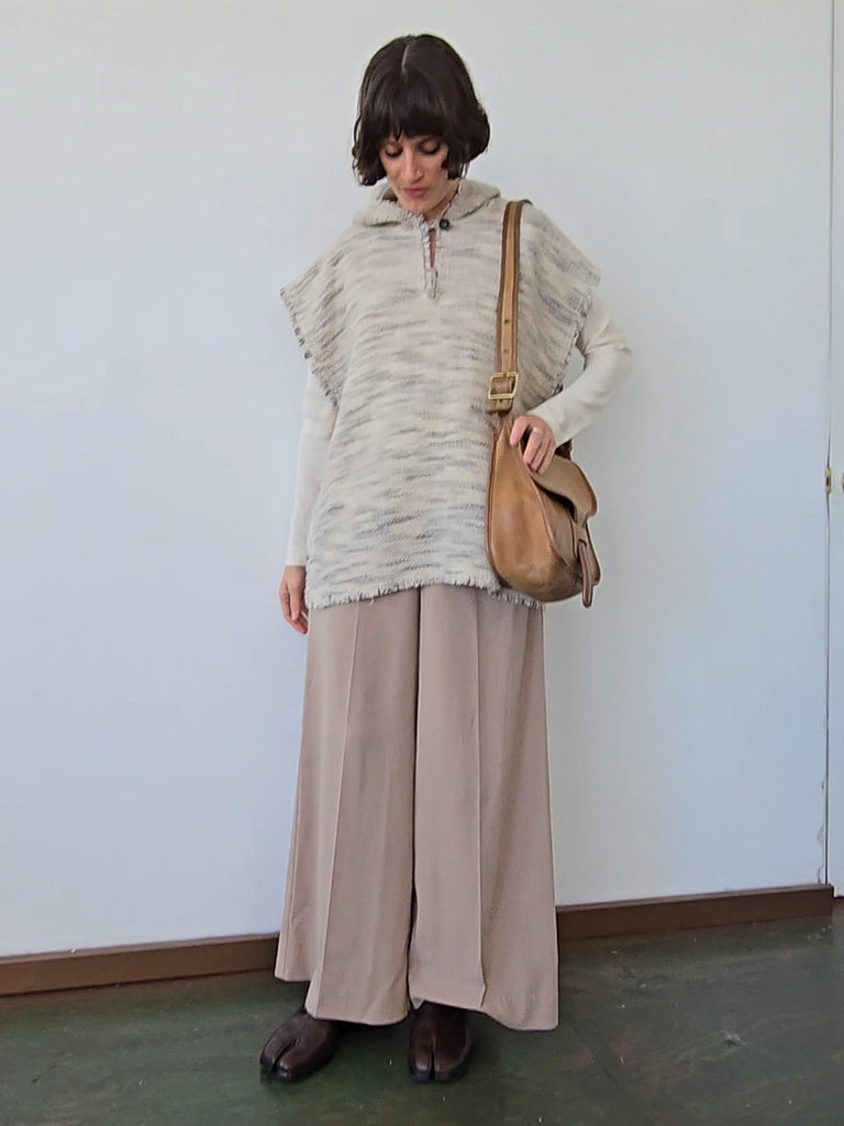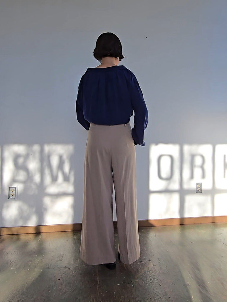 Vintage minimalist khaki trousers. High rise and ultra wide leg. Marks of discoloration throughout.