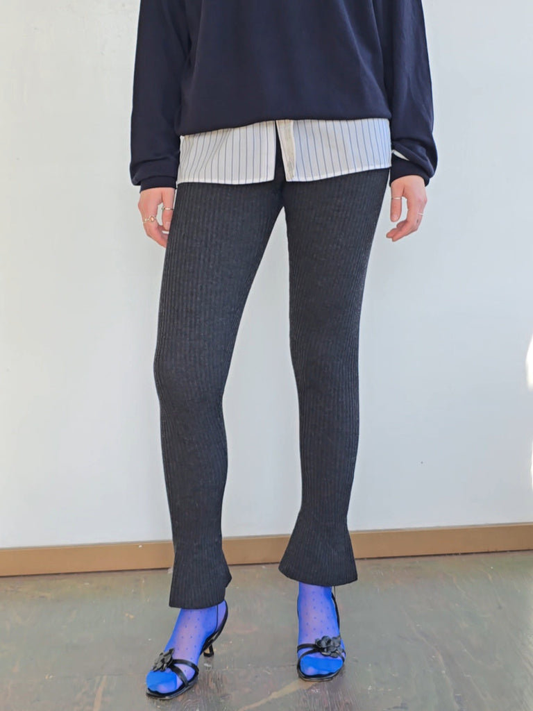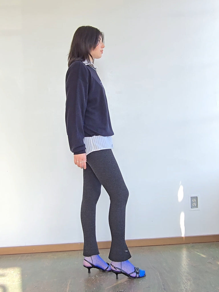 Vintage Prada gray wool ribbed pants with a lower rise and elastic waist. Super comfy and cute, marked size 38.