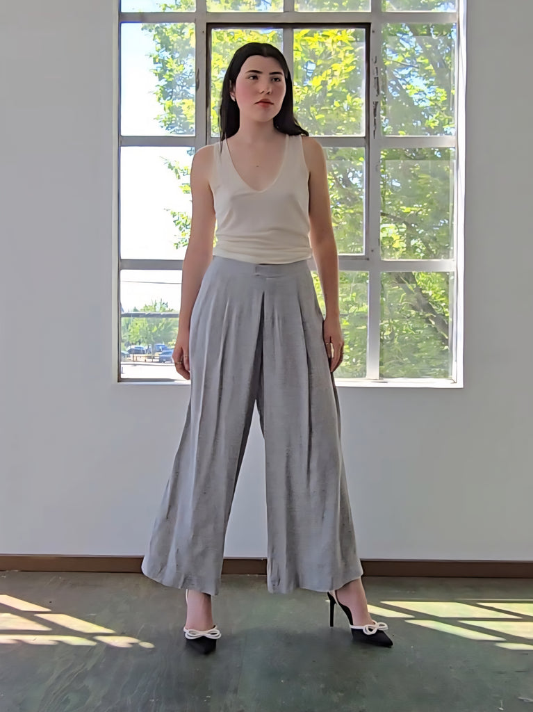 Italian-made silk tank top with deep V-neck and a large keyhole opening in the back. In great condition. Marked size S.