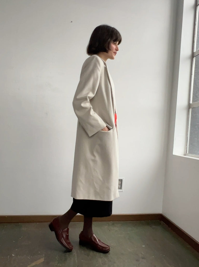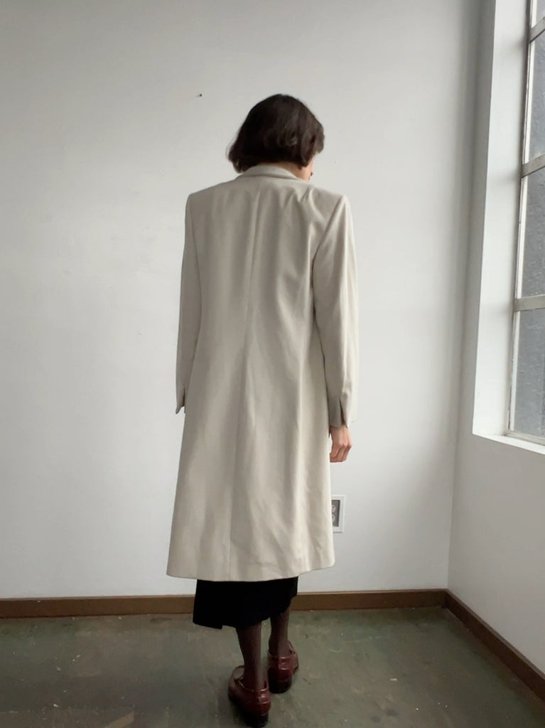 Pale cream open fit coat. Made by Badgley Mischka. Fully lined and features pockets at the sides. Great condition.