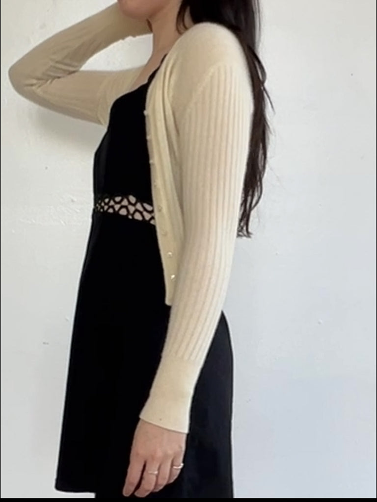 Incredibly soft scottish-made Ballantyne cashmere ribbed cardigan with mother of pearl buttons. In great condition.