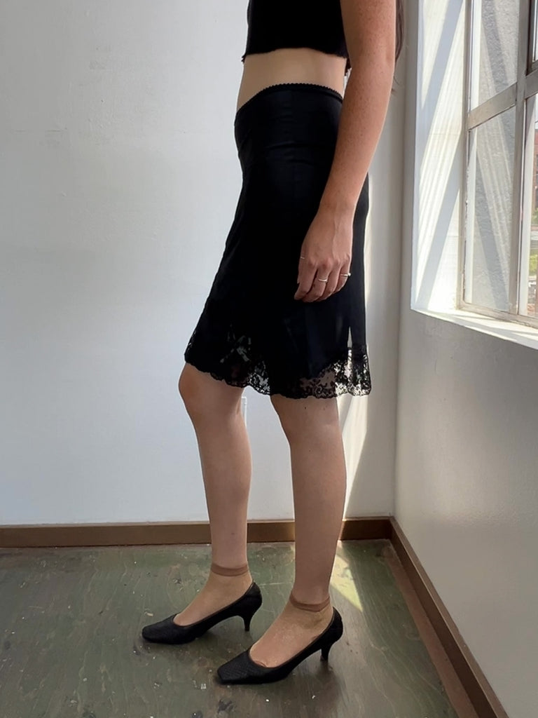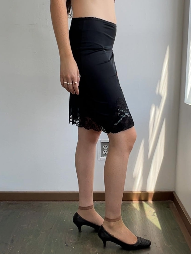 Vintage Black Half Slip w/Bows (S)
