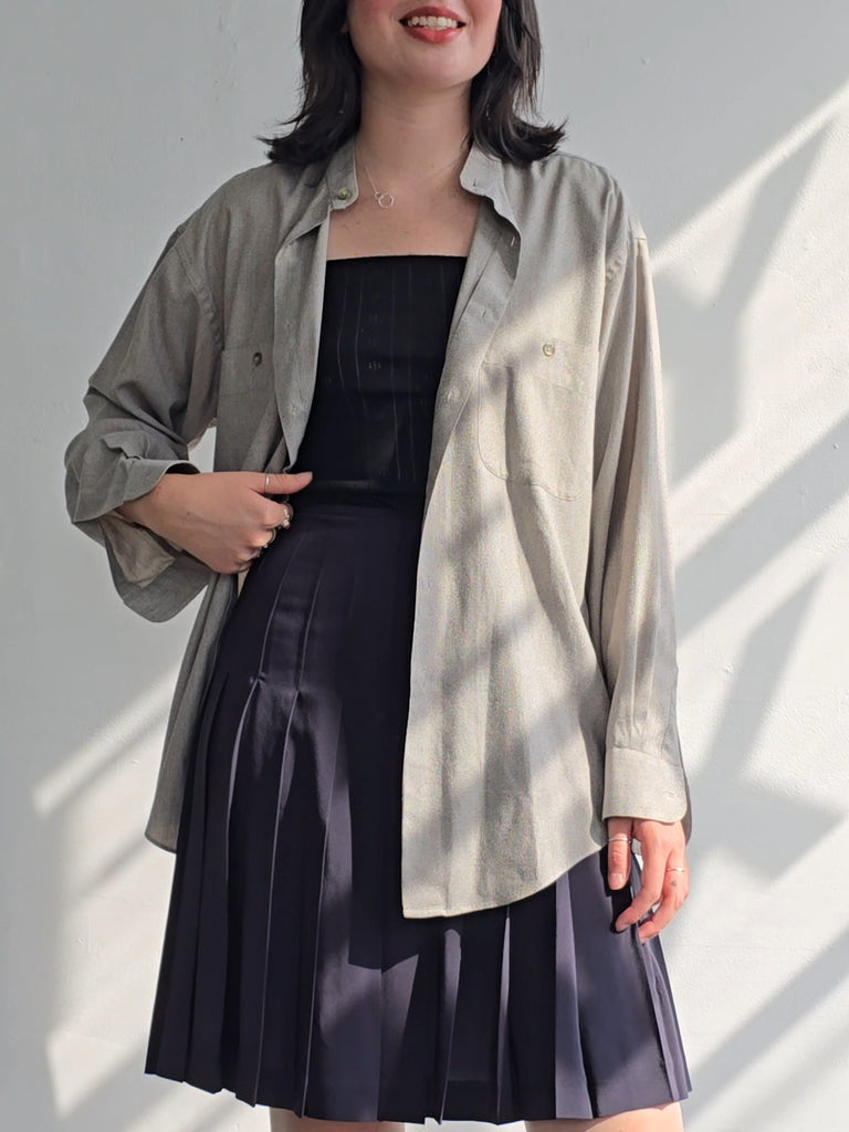 Yves Saint Laurent collarless grey woven button up with two pockets at the front. In great condition.Marked sz 32/33