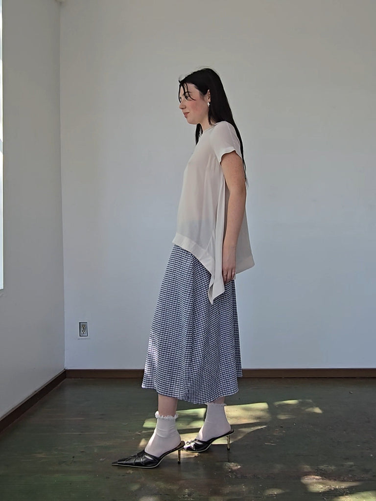 Zimmerman soft gray silk short sleeve blouse with an asymmetrical hem. In great condition.