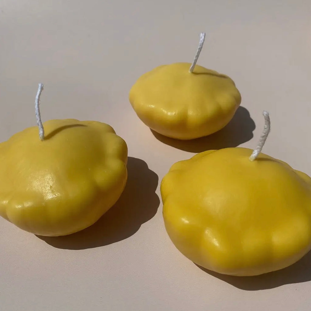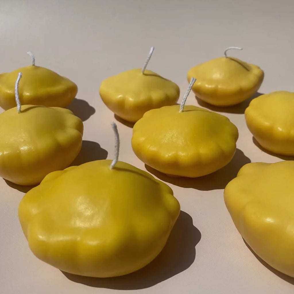This Patty Pan Yellow Squash Scandle is the zest of life in candle form! Hand-poured with care in Los Angeles, this quirky citrus-scented delight is your ticket to a fragrant paradise. Made from 100% soy wax, it's the heart and soul of our Farmers Market Collection. Illuminate your space with this fun and fruity candle that's as unique as you are.